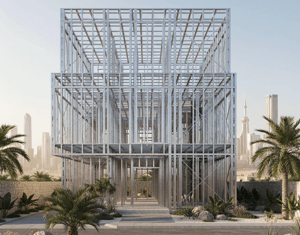 في Greensvill, نحن نطور ونشكل مستقبل البناء في المملكة العربية السعودية مختصون وخبراء في البناء بتقنية مقاطح الحديد البارد المجلفن (Light Gauge Steel Framing-Cold Steel). نجمع بين أفضل الممارسات العالمية ومتطلبات البناء المحلية لنقدم بديلاً أسرع وأخف وزناً وأكثر متانة من طرق البناء التقليدية. من التصميم الأولي إلى التجميع النهائي، نلتزم بتسريع تسليم المشاريع مع الالتزام بأعلى معايير الجودة، بما يتماشى تماماً مع أهداف التنمية السريعة لرؤية المملكة 2030.