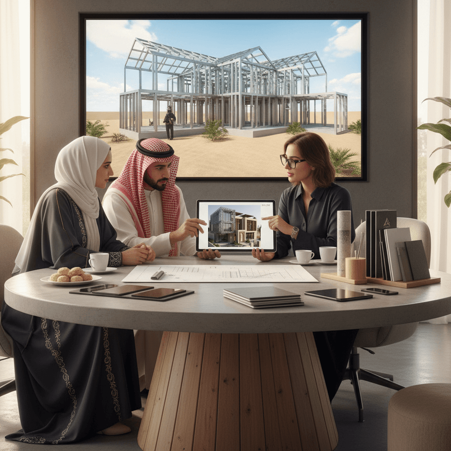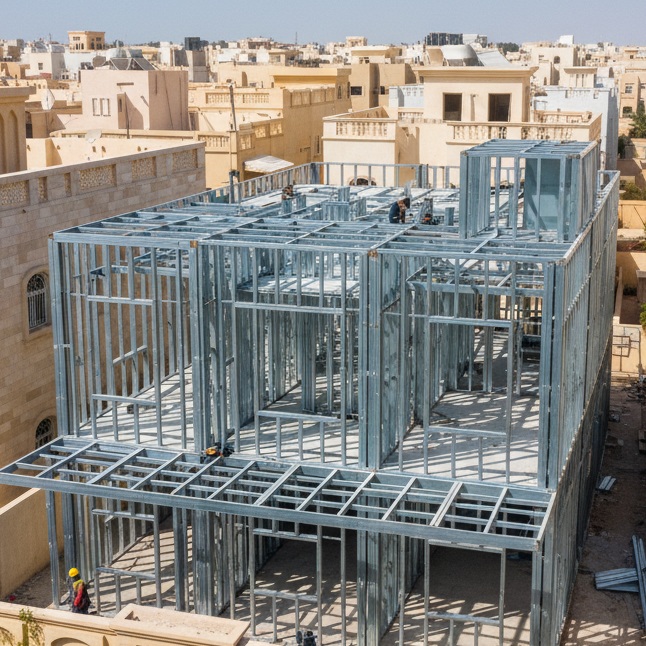 GreensVill متخصصون في التنفيذ الكامل للمباني بتقنية البناء باستخدام مقاطع الحديد البارد المجلفن (LGSF) في المملكة العربية السعودية.